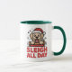 Sleigh All Day Joyful Retriever translates to a lively, high-contrast mug graphic that brightens morning routines. The cartoon retriever in a wooden sleigh with paw-trail accents keeps the composition compact and legible on curved surfaces. A standout choice for gift buyers seeking cheerful pet-themed mugs. Perfect as a stocking stuffer for dog lovers.