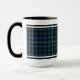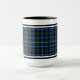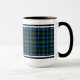 Uma caneca de café com tartan para Clan Smith e suas sebes. Padrão real azul, verde florestal e xadrez escocesa preta de 1886, com sotaques amarelo-claro, vermelho e azul-céu.