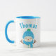 Aproveite uma bebida agradável e de férias com o Snow Man Personalize o Café Mug. Esta caneca festiva de café apresenta um bonitinho Homem de Neve com neve caindo nas costas. Personalizar nome e texto.
