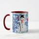 Feliz boneco de neve com um pássaro cardeal. Deixe-o nevar! Vamos lá fora construir um boneco de neve! Personalize sua caneca.
