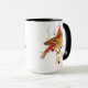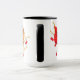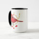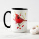 Desenhos manuais de cardeais masculinos e femininos em ramos de árvore dourados de winterberry com queda de neve leve. Traga um espírito natalício festivo para o seu entretenimento de férias ou doação de presente com esta caneca — ou durante todo o ano. Por Surface Pattern Designer, L Diane Johnson.