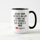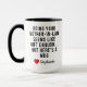 Uma caneca de sogra personalizada engraçada com a mensagem humorística, “Ser sua sogra já parece um presente suficiente… mas aqui está uma caneca.” É um presente de brincadeira perfeito para aniversários, Natal e Dia das Mães. Esta caneca sarcástica é ideal como um presente de uma nora ou genro, apresentando um nome personalizado. Um presente de humor familiar único e engraçado, perfeito para celebrar ocasiões com um toque leve para as sogras.