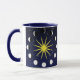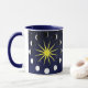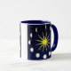 As fases da lua rodeiam um sol brilhante sobre um fundo estrelado