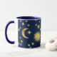Caneca Sol, Lua e Estrelas no Azul Escuro