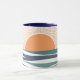 Abstrato ilustração do nascer do sol com o sol laranja e decoração de ondas marítimas azuis, brancas e turquesas
