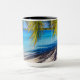 Sombras de uma palmeira na praia de Takapoto, uma ilha no atol Tuamotu na Polinésia Francesa.