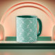 Elegante e sofisticado, este café Deco Dreams transmite a confiança da Era do Jazz. Com seus padrões simétricos e formas ousadas, é uma mistura perfeita de charme retrô e elegância contemporânea.