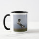 Caneca Spaniel de Springer preto e branco que joga com