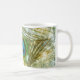 Caneca glamoroso do feriado com a pena bonita do pavão, ouropel de prata brilhante e luzes sparkling