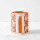 Mug em um padrão de impressão de bloco, baseado em uma concha espiral, em laranja-coral profunda em uma laranja-coral pastel/fundo de damasco