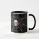 Única aranha-do-céu do tema das bruxas no Halloween numa teia-aranha com uma caneca de café preta. Esta caneca seria um presente perfeito para qualquer um ou um excelente adicional para uma festa temática de Halloween. Vem em uma variedade de cores para o dentro e a alça da caneca.