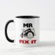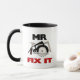 Engraçado, Sr. Fix, camisa e presentes para o seu homem de mão, carpinteiro ou trabalhador de construção favorito. Design tem uma serra circular, martelo e nível. Disponível em camisas, capuzes, chapéus, canecas, canecas de cerveja e muito mais.