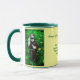 St Francis de Assisi, nascer em Assisi em 1182, era uma manifestação viva ao mundo do cristo pobre e da vida do sofrimento na terra. É conhecido para ser o santo padroeiro dos animais e do ambiente. Era o fundador da ordem de menor dos frades, conhecida mais comumente como os Franciscans. Esta caneca retrata St Francis com as duas pombas brancas em um campo verde de wildflowers amarelos. A primeira seção de inspiração da "oração do santo Francisco de Assis" é imprimida entre duas imagens do santo.