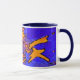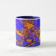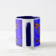 Arte colorida da "Galáxia de Calli" em azul, roxo e ouro amarelo numa xícara com marinho de alça azul e interior. Eu apelidei meu cachorro de Calli de "Cadete Espacial" porque ela zoneou tanto - a arte deriva das marcas que ela deixou na porta da tempestade depois de um de seus "encontros próximos" tentando atravessá-la em vez de entrar ou sair. É incrível quantos astros apareceram em sua "arte nasal" - eu realmente acho que ela passou muito tempo em outro espaço. Sinto falta dessa garota, mas ela vive no meu coração E na arte que fizemos juntos, assim como Cassie (PiCassieO) faz.
