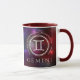 Mostre sua personalidade com esta simples, mas impressionante caneca, que apresenta o personagem astrológico estilizado de Gemini, o terceiro signo do zodiac ocidental, cercado por quatro traços chave daqueles nasceres sob o símbolo dos gêmeos e rendido em um campo estrelado pintado com poeira estelar policromática através da noite de veludo preto! Adicione seus traços de personalidade ao seu sinal e ajuste filtros e fontes conforme desejado! O reverso mostra design idêntico. Design © W.H. Sim. Mais informações em zazzle.com/expressionsoccasions