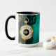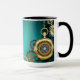 Jewelry, gold watch with a gold chain and keys on a green textural background. Steampunk style.