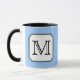 Monograma à moda azul pálido, preto e branco. Letra inicial do monograma preto feito sob encomenda em uma pia batismal agradável, para que você mude a sua escolha da letra ou do numeral. Este design no artigo é uma imagem impressa do plano.