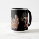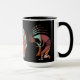 Penas do Sudoeste Kokopelli. Alienígena ou Life Form Sunset Kokopelli Coffee Cup. Abstrato do Estilo Americano do Sudoeste Nativo tocando flauta Cavernas Petroglifos, canecas de boa sorte. Kokopelli é uma divindade da fertilidade, um flautista jubilado, culturas nativas americanas. Atribuído a aliens antigos ou arte tribal e inspirado em desenhos de cavernas e rochas. Excelente ideia de presente para aqueles que amam copos temáticos do sudoeste, e a história antiga do planeta.