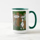 Uma caneca com um desenho engraçado sobre mudanças climáticas. A imagem, o fundo e o texto podem ser personalizados. Arte original de DBcartoons.