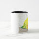 Uma caneca com desenho de Sun Conure e um verso inspirador.