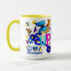 Flores, borboletas, corações, folhas e mais, toda incluídos com logotipo de Síndrome de Down para o logotipo da consciência. Abraço excelente de uma caneca. Cores corajosas e brilhantes, em um fundo branco. Todos ama um abraço super de uma caneca de café/chá na manhã. Mostre seu apoio.