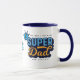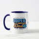 Cada super-herói precisa de sua própria caneca única. Um presente divertido para o seu super pai! O design apresenta o "Super Pai" em um design tipográfico de estilo na moda divertido, em azul marinho, azul claro e amarelo, com um design de quadrinhos de meio tom. Personalize com o monograma do Pai e seu próprio texto opcional. Cria um presente personalizado verdadeiramente único para o Pai. Presente perfeito para Dia de os pais, aniversários, e muito mais! Design por Moodthology Papery