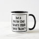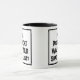 Um slogan engraçado em uma caneca de café com dois tons que diz "Sou um Chef de Odontologia. Qual é o seu super talento?". Duas caneca de café de tom para um chef de pastelaria. Texto preto e branco em negrito.
