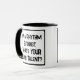 Um slogan engraçado em uma caneca de café com dois tons que diz "Eu sou um guitarrista de ritmo. Qual é o seu super talento?" Duas caneca de café de tom para um guitarrista de ritmo ou guitarrista de ritmo. Texto preto e branco em negrito.
