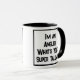 Um slogan engraçado numa caneca de café de duas tonalidades que diz "Sou um Angler. Qual é o teu super talento?". Duas caneca de tonalidade para um angler ou um pesquisador. Texto preto e branco em negrito.