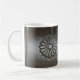 Uma caneca com uma imagem de um receptor superior do rifle do modelo 99 de Arisaka com suas gravuras do crisântemo imperial e do número de modelo (escritos no japonês). Este era um rifle de infantaria da segunda guerra mundial usado pelo exército imperial japonês. Depois que Japão se rendeu, a gravura do crisântemo foi mmoída fora da maioria destes rifles.