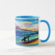 Mug criou da pintura na rua 505 Lahaina, foi no final da tarde e eu estava assistindo um amigo entrar de uma aula de surf. O estudante era uma menina jovem e eu sabia que era a última classe do dia porque ele estava carregando na boia.