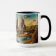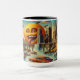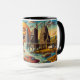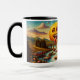 Caneca "Surreal Cityscape com Sol Antropomórfico"