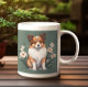 Digitale Kunst: Kleiner süßer Collie umringt von Pflanzen und Blumen, im Aquarell-Stil. Ideal für Hundeliebhaber.