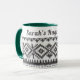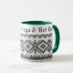 Concozinhem este inverno com uma caneca vestida com um suéter feio. Esta caneca quente de inverno apresenta um padrão de blusa de natal preto e branco e o texto 'Abraços e cacau quente' em uma cor de cinza escura. Você pode editar o texto e optar por substituir o nome existente pelo seu. Personalize esta caneca para você ou para alguém especial. Faz excelente aniversário e presente de natal. Ver a coleção de cheios dos SWEATER MUGS | VACAS E COCOA QUENTE aqui: https://www.zazzle.com/collections/sweater_mugs-119313634791423161