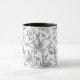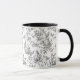 Sweet black toile French bunny rabbit design with flowing vines watercolor whimsical design. A perfect mug for your morning coffee or tea.