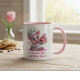 Start Mom’s morning with a smile and a dash of sweetness! This adorable two-tone coffee mug features a charming watercolor pig chef proudly presenting a flower-topped strawberry cake. The vibrant pink handle and interior perfectly complement the playful script that reads, "The Sweetest Mom in the Whole World!".