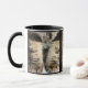 A hilarious and unique mug design featuring two close-up photographs of an adorable brown tabby cat. One photo shows the cat's intense green eyes, nose, puss and whiskers, and the other captures the fluffy front tabby legs and paws. Perfect for cat lovers, veterinarians, pet owners, or anyone who enjoys quirky, abstract, and humorous animal designs. A fun way to enjoy your morning coffee or tea!