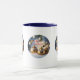 Taça de Café de Natal de Hummingbird com fotos tiradas pelas Criações de Audrey. Dois beija-flores com nariz-grosso com ornamentos de ouro.