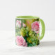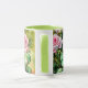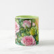 Meu trabalho de arte digital original com minha fotografia original de flores rosas cor-de-rosa num jardim está neste bonito copo de caneca floral. A imagem foi processada com efeito de fantasia de aquarela para uma aparência ilustrada e caprichosa. A dentro da xícara e da alça são um tom verde-claro para complementar o trabalho de arte. Estas são canecas de 11 onças, do tamanho perfeito para o café ou chá da sua casa - ou até chocolate quente! Ele faria um presente de excelente e você poderia colocar pacotes de café, bolsas de chá ou dentro de chocolate quente. Uma outra ideia de presente é colocar uma pequena planta nela para torná-la mais especial para o seu amado.