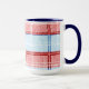 Esta caneca bonito apresenta um padrão de xadrez antigo retrabalhado e criado digitalmente por mim em tons vermelhos, brancos e azuis, para uma sensação patriótica. O cabo e o dentro são um tom azul para complementar o trabalho de arte. Estas são canecas de 15 onças, do tamanho perfeito para o café ou chá da sua casa - ou até chocolate quente! Ele faria um presente de excelente e você poderia colocar pacotes de café, bolsas de chá ou dentro de chocolate quente. Uma outra ideia de presente é colocar uma pequena planta nela para torná-la mais especial para o seu amado.