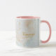 O tema da astrologia legante, o zodiac Taurus, sigla de estrela Bull Coffee Mug, sobre um fundo cósmico sutil azul de gelo malhado. O nome do monograma e os detalhes de texto da tipografia popular podem ser facilmente personalizados. Um toque de brilho de ouro falso celestial adiciona um pouco de glamour e mística. Disponível em todos os 12 sinais de zodíaco