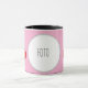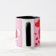Divertida, única, bonita taza mágica. La parte exterior de la taza presenta una base de color rosado, con estampado de corazones, tienes la opción de colocar una foto, logo, estampado o texto; mientras que el borde y el asa lucirán el color sólido que elijas, por ejemplo negro. Puedes elegir un color a juego con tu vajilla o regalarle a tus amigos unas tazas con sus colores preferidos.