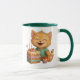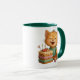 Taza de cerámica con diseño adorable de gatito celebrando su cumpleaños. Presenta una ilustración alegre y colorida, con detalles encantadores como un pastel y un cupcake, ideal para transmitir ternura y felicidad en cada uso. Su interior y asa en color verde le aportan un toque moderno y llamativo. Perfecta para disfrutar de tus bebidas favoritas o como regalo especial para niños y amantes de los animales.