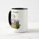 The name on this mug can be customized or removed. You have an option of the handle and interior colors and the style of mug.