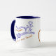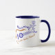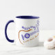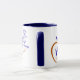 "Live Out Loud" diz o texto cor de laranja nesta caneca. Acima do texto está um gráfico real de ouro azul e laranja moderno de uma guitarra, folhas e flores. A imagem é impressa duas vezes na caneca.