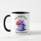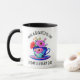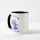 Bonito xícara azul-chinesa de flores cor-de-rosa com a citação, "Tenha um belo dia hoje e todos os dias." "
