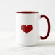 Uma caneca de dois tons com um coração vermelho de um lado e "Tenha um "coração" do outro.