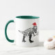 Espalhem a alegria de férias com esta engraçada caneca de Natal no tênis! Bobo t-rex dinossauro com um chapéu de Papai Noel e uma raquete de tênis torna esta caneca de café perfeita para qualquer fã de esportes de raquete. Personalize-o mudando a cor da alça e carregue sua própria foto para um lado para criar um presente personalizado.