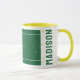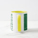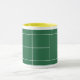 Caneca tênis criativa com bolas de tênis no campo de tênis verde. Para personalizar o texto de edição para adicionar o nome do seu tênis, treinador ou amante esportivo favorito.