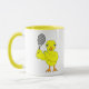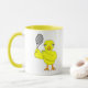 Um pintinho amarelo segurando uma raquete e uma bola de tênis é um design de presente engraçado para instrutores e jogadores de tênis.